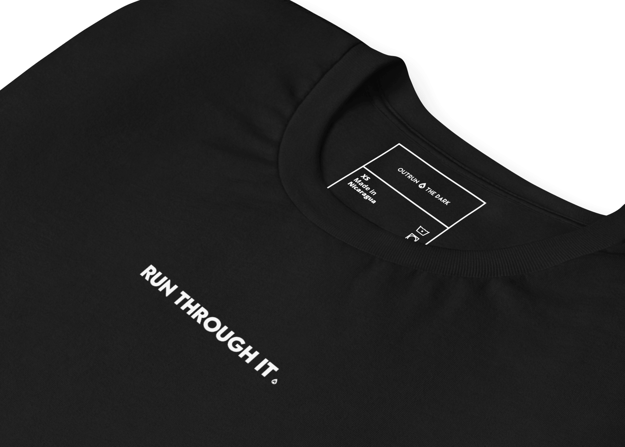 OUTRUN THE DARK is a running community for those who run for more than miles. 10% of all profit goes toward funding new ways to alleviate anxiety and depression.