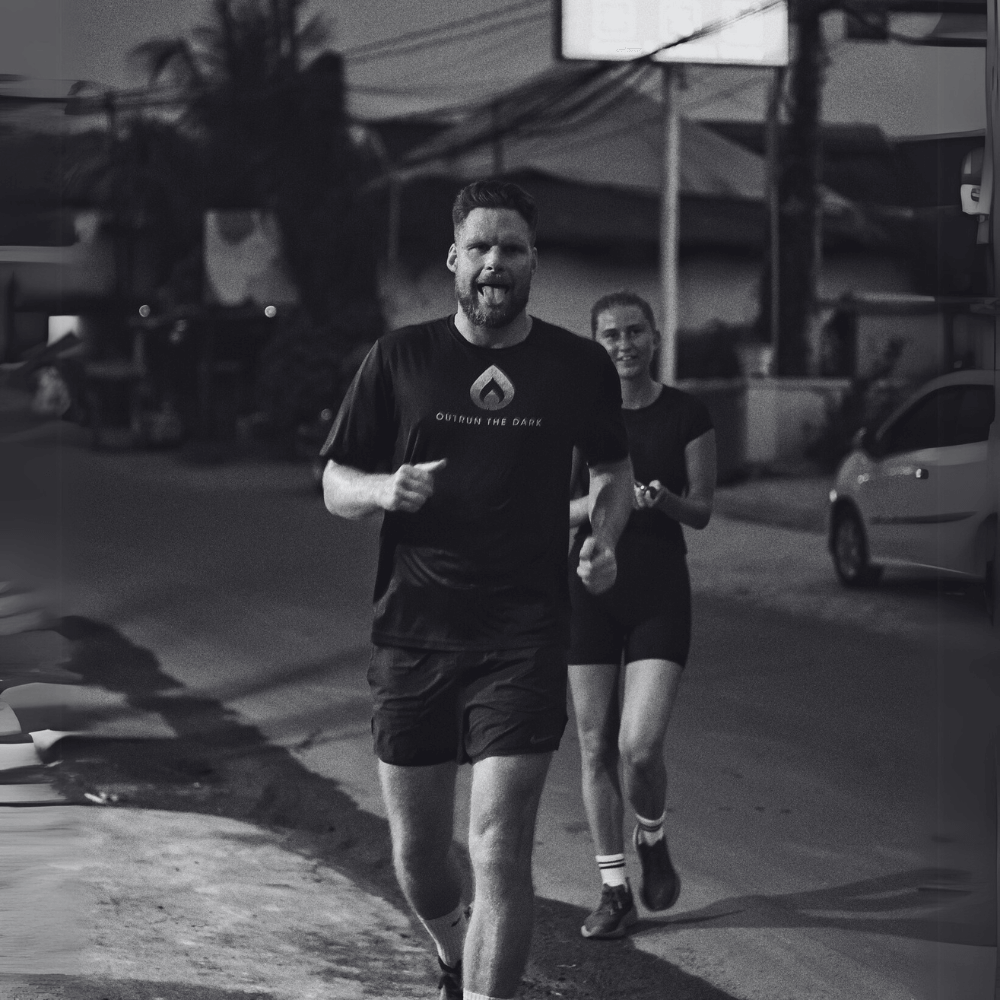 In the social media age where every instagram feed is a highlight reel, we want to raise awareness of everyone fighting a battle underneath.Β Reaching out for help is hardest when you need it the most, and that's why being open and raising awareness is a core part of who we are.Β By wearing an OUTRUN THE DARK piece you support those who fight.
